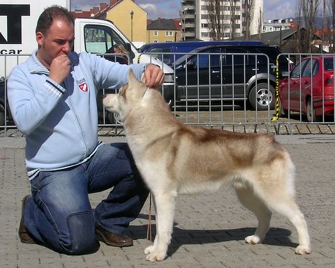 European Dog Show, Aky is 3° Exc. young class. Handler Olivier Schimpf , Oumiak kennel.